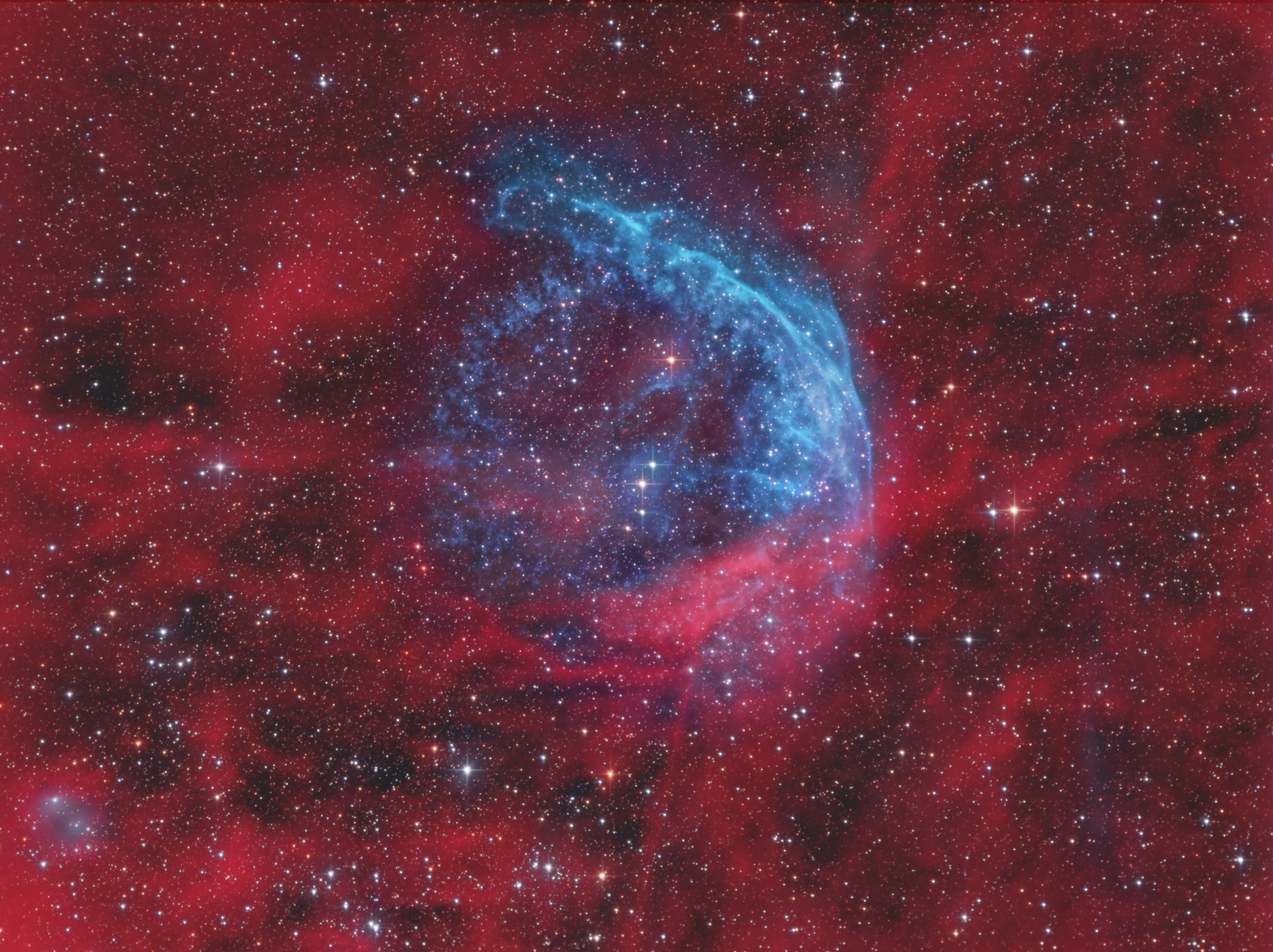 Gesamtbelichtungszeit: 14h 45min (HαOIIIRGB) 7h 25min (HαRGB)